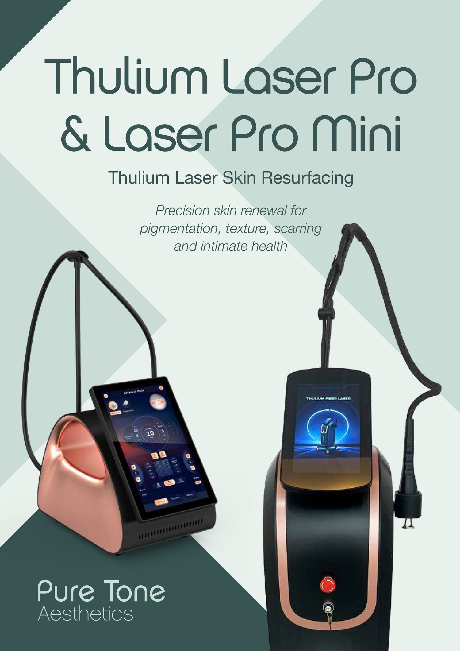 Download the brochure for the Pure Tone Thulium Laser Pro, an advanced fractional thulium laser system developed for controlled skin resurfacing and rejuvenation in professional clinical settings. Designed to deliver precise thermal stimulation with minimal downtime, the Thulium Laser Pro is ideal for practitioners seeking effective treatment outcomes with a strong safety profile.