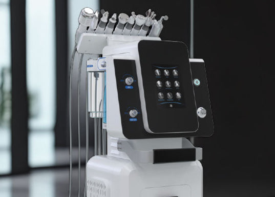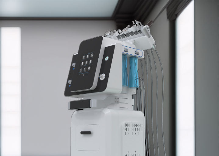 The Hi-Skin III Multi-functional Hydro Peel Skincare Platform comes with 9 interchangeable treatment heads